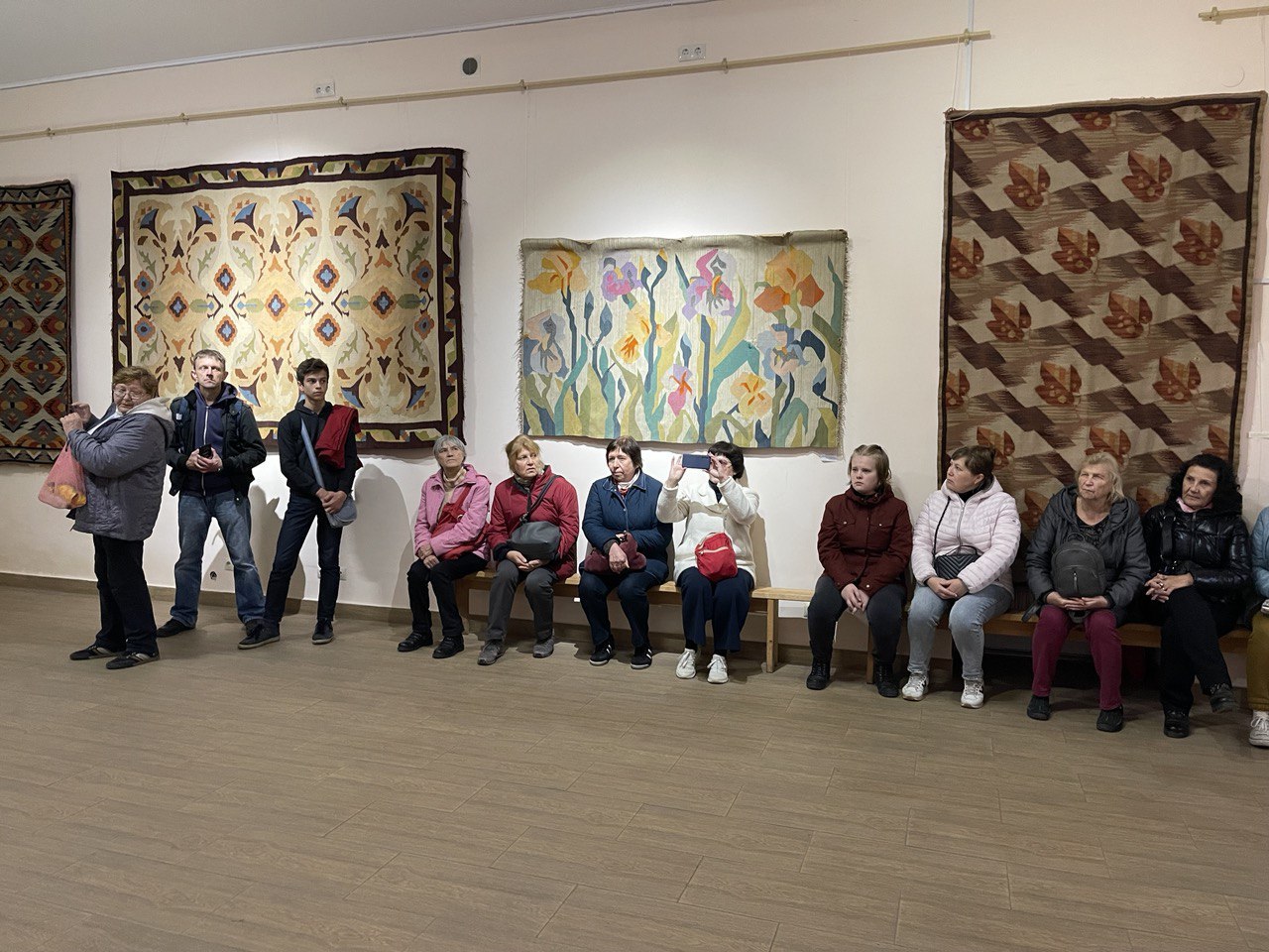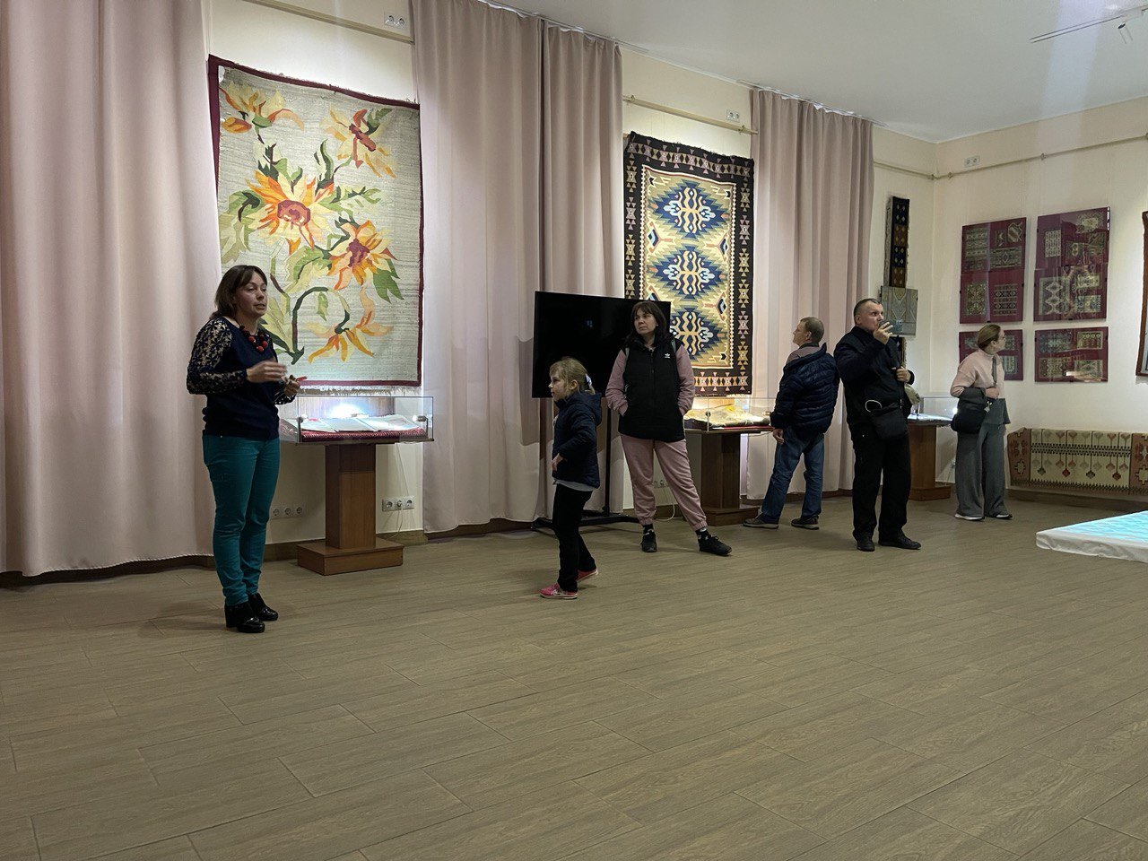 А потім розкривати таємниці минулого буде екскурсовод пані Ірина з натхненням, з пречудовою дикцією так, щоб почули і дорослі, і діти. Очі завмирають на вишукованих зразках килимів–отримуєш незабутні враження! А ще можна самому спробувати виткати свій витвір–вау!