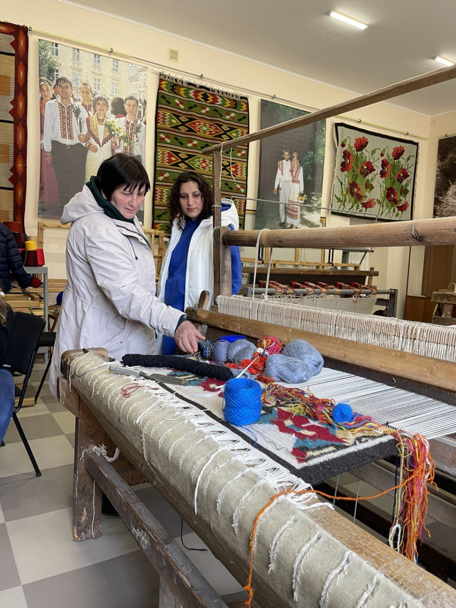 Також зайдемо в музей килимарства, оглянемо давні зразки ткацького мистецтва, давні верстати та спробуємо самі працювати в цій техніці.
