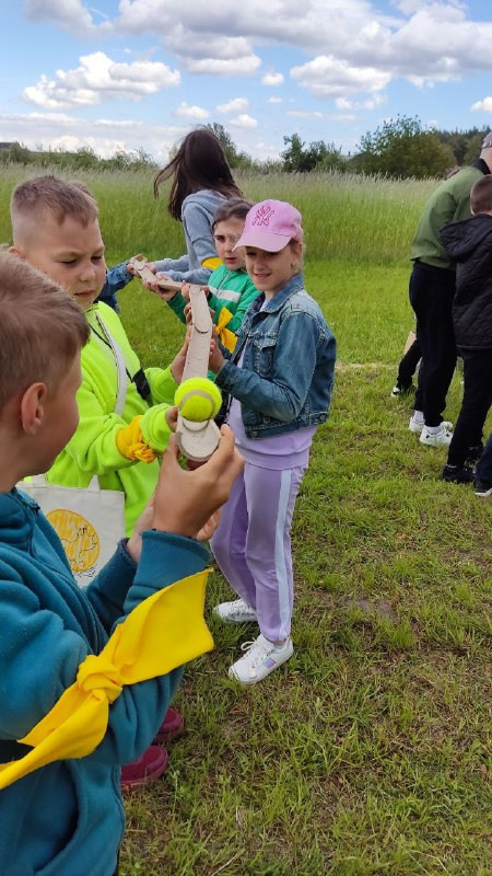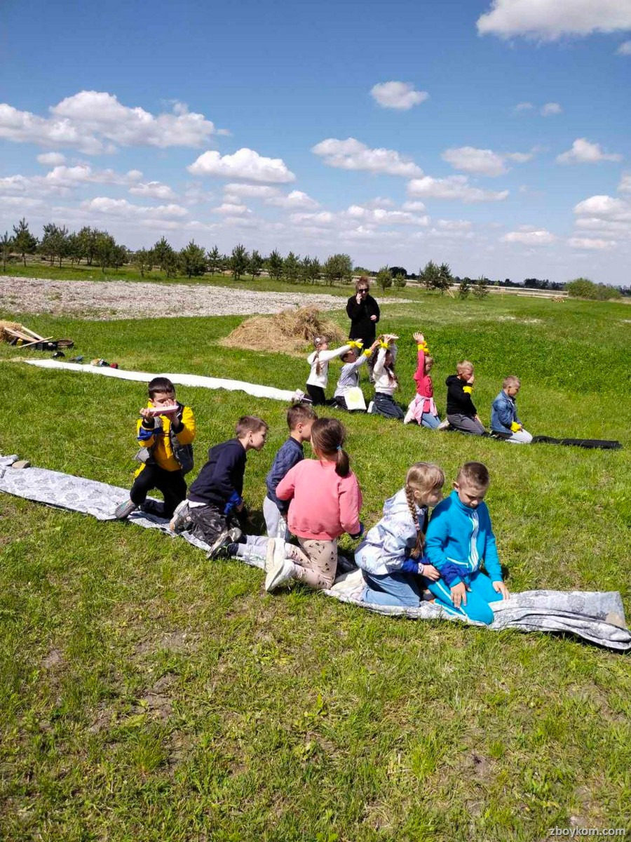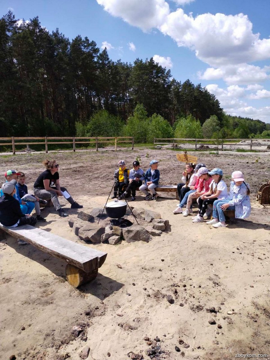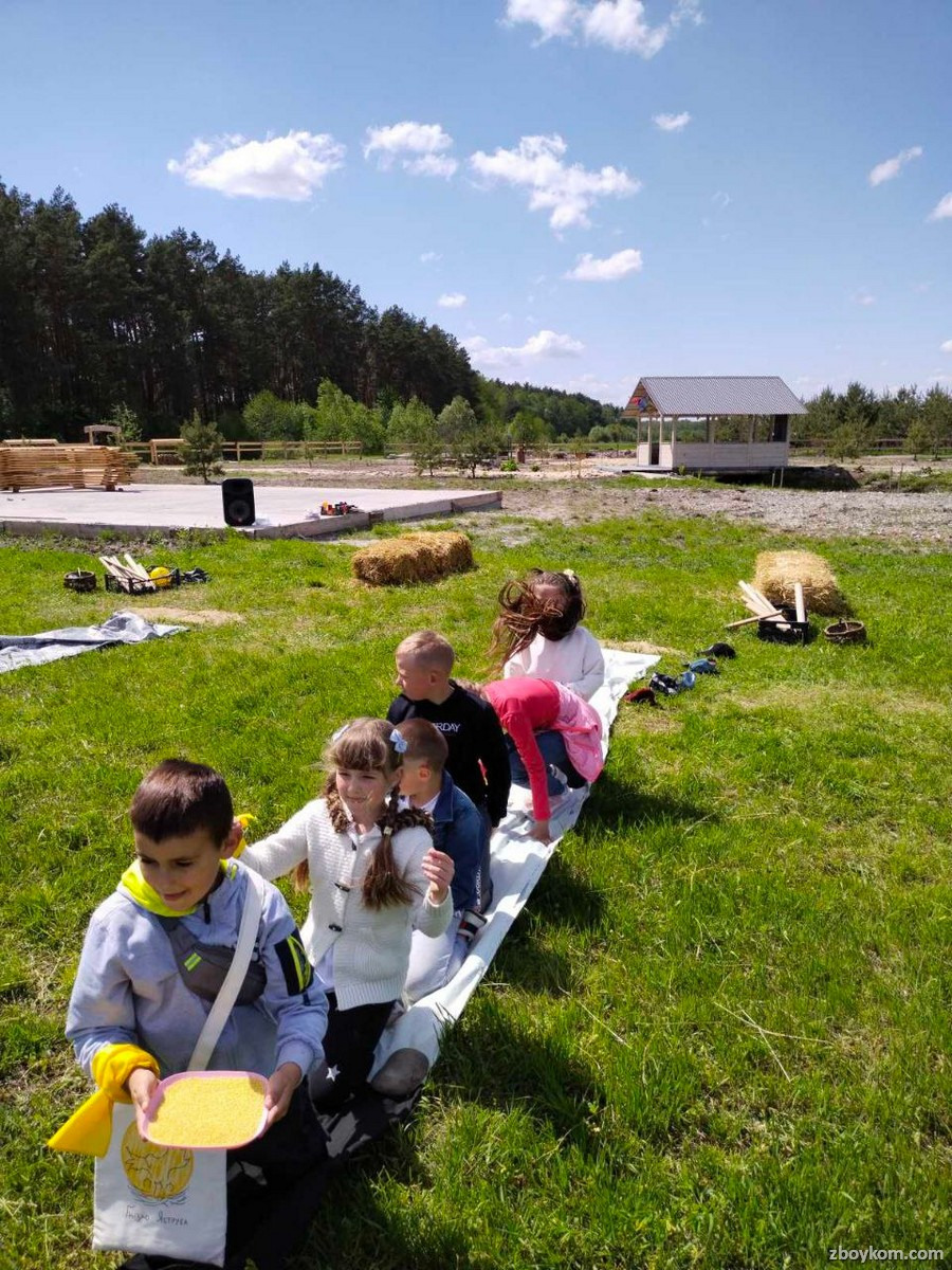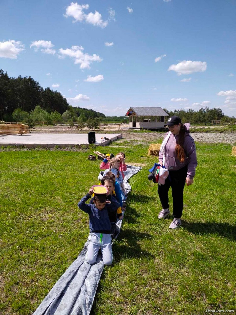 - Командоутворююча гра: перший етап – власне активності: командні змагання, спрямовані на те, щоби діти навчились працювати спільно. Вчимося перемагати. Вчимося програвати. Обіцяємо багато драйву, шуму, виховання згуртованості. Ми під лісом, тому тут дозволено голосно кричати, бігати і шуміти.