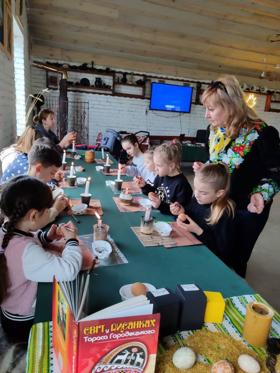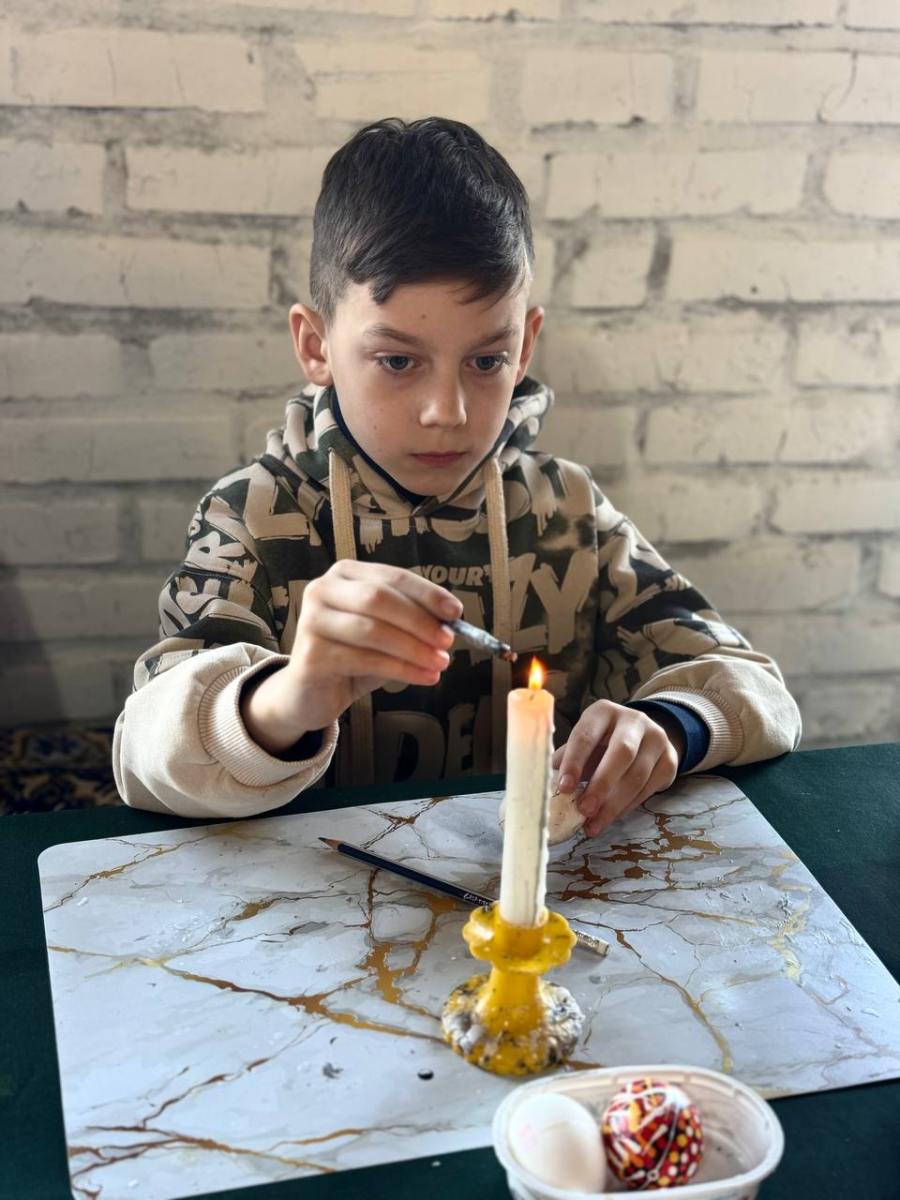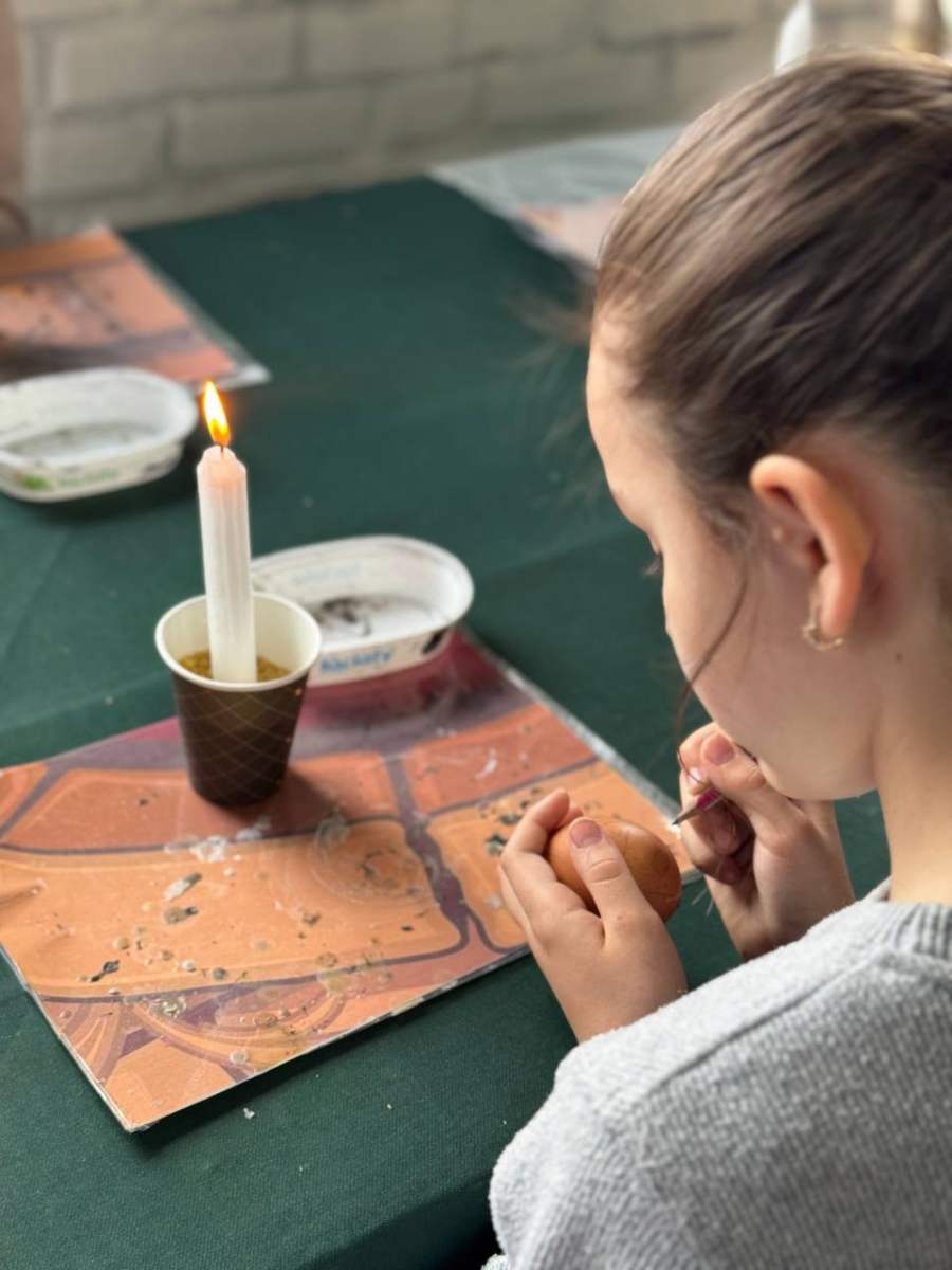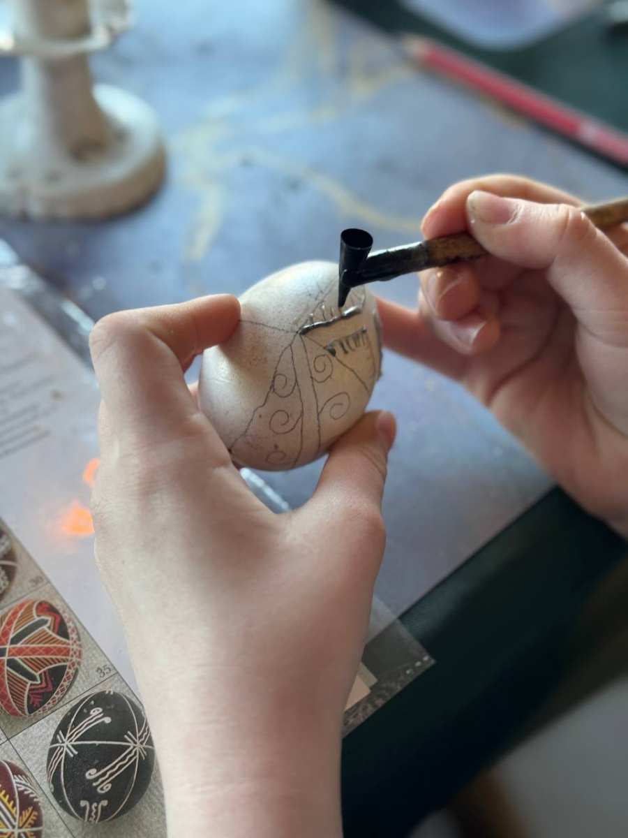 Знайомимось з символікою орнаментів та кольорів, вивчаємо традиційні писанкарські техніки, працюємо писачком та шпилькою.