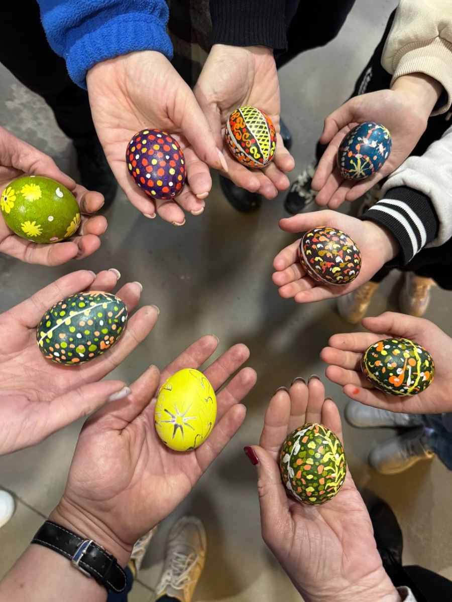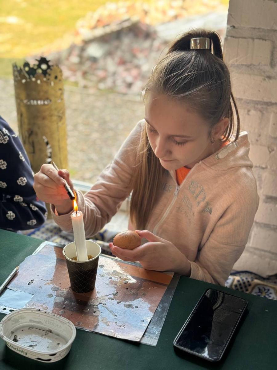 до нашої незрівнянної, красивої української традиції – розпису яйця. Галинка, Ліля, Ірина – це справжні чарівні феї, які вміють і знають, як