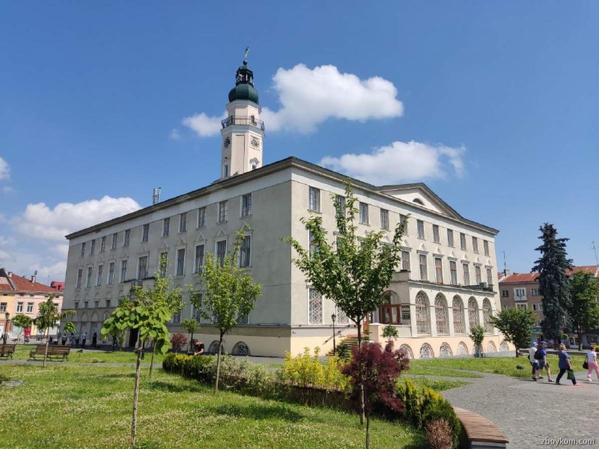 Дрогобицька ратуша (1926-1929), без якої годі собі уявити центральну площу міста – Ринок, входить у перелік п’яти найкрасивіших ратуш Західної України та у двадцятку найкрасивіших адмінспоруд країни. А сама вежа ратуші входить у перелік 18 найкращих оглядових майданчиків та є однією з найвищих на Галичині. Кажуть, що саме там починається “дрогобицьке небо”. 2 квітня 1990 року над ратушею офіційно замайорів синьо-жовтий стяг. Відтак Дрогобич став першим містом в Україні, яке публічно вивісило лише український національний синьо-жовтий прапор, а не поруч з державним прапором УРСР. З оглядового майданчику (що на висоті 32 м) ратуші відкривається чудовий краєвид на усе місто та смарагдове підніжжя Карпат.